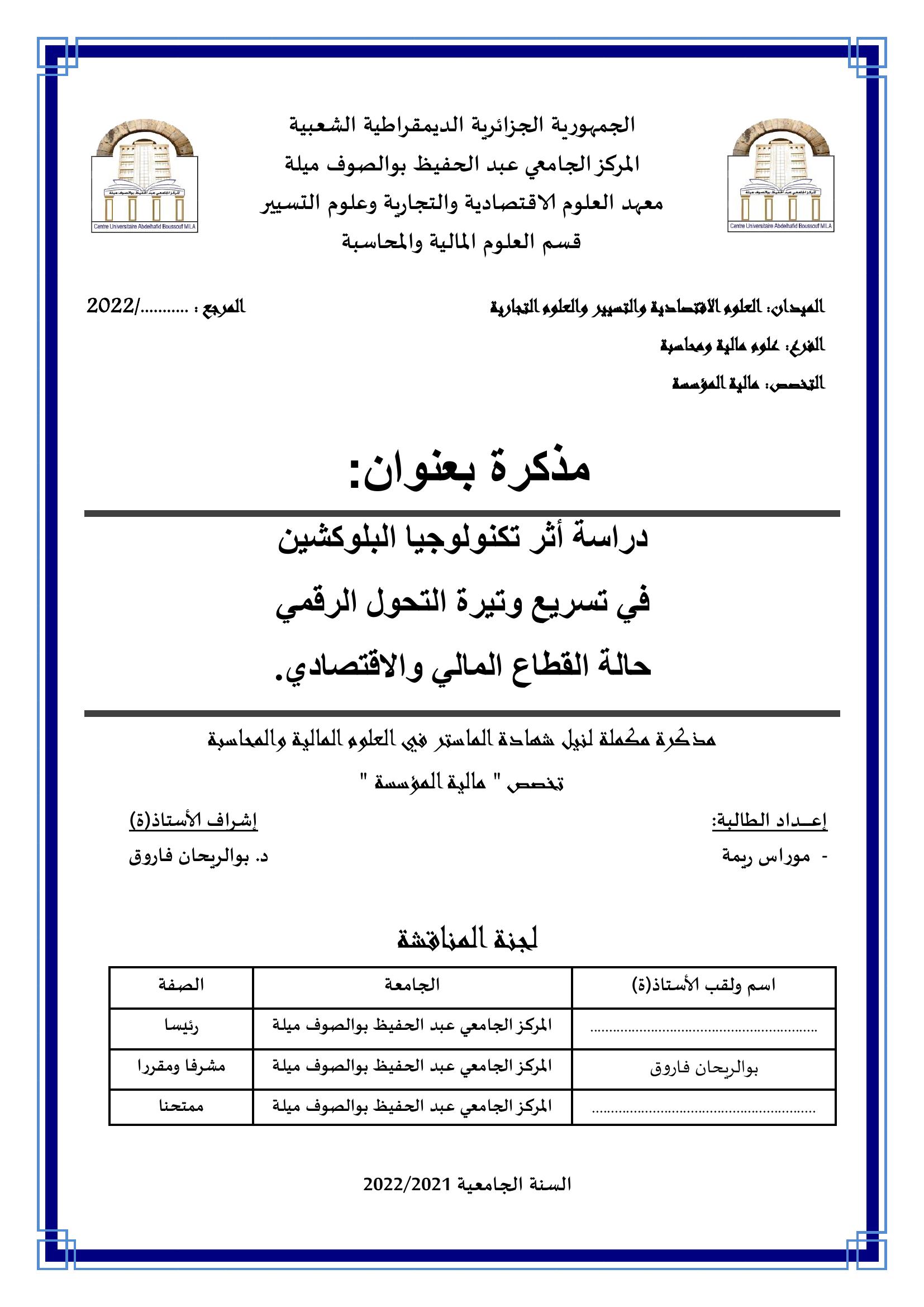 دراسة أثر تكنولوجيا البلوكشين في تسريع وتيرة التحول الرقمي حالة القطاع المالي والاقتصادي.