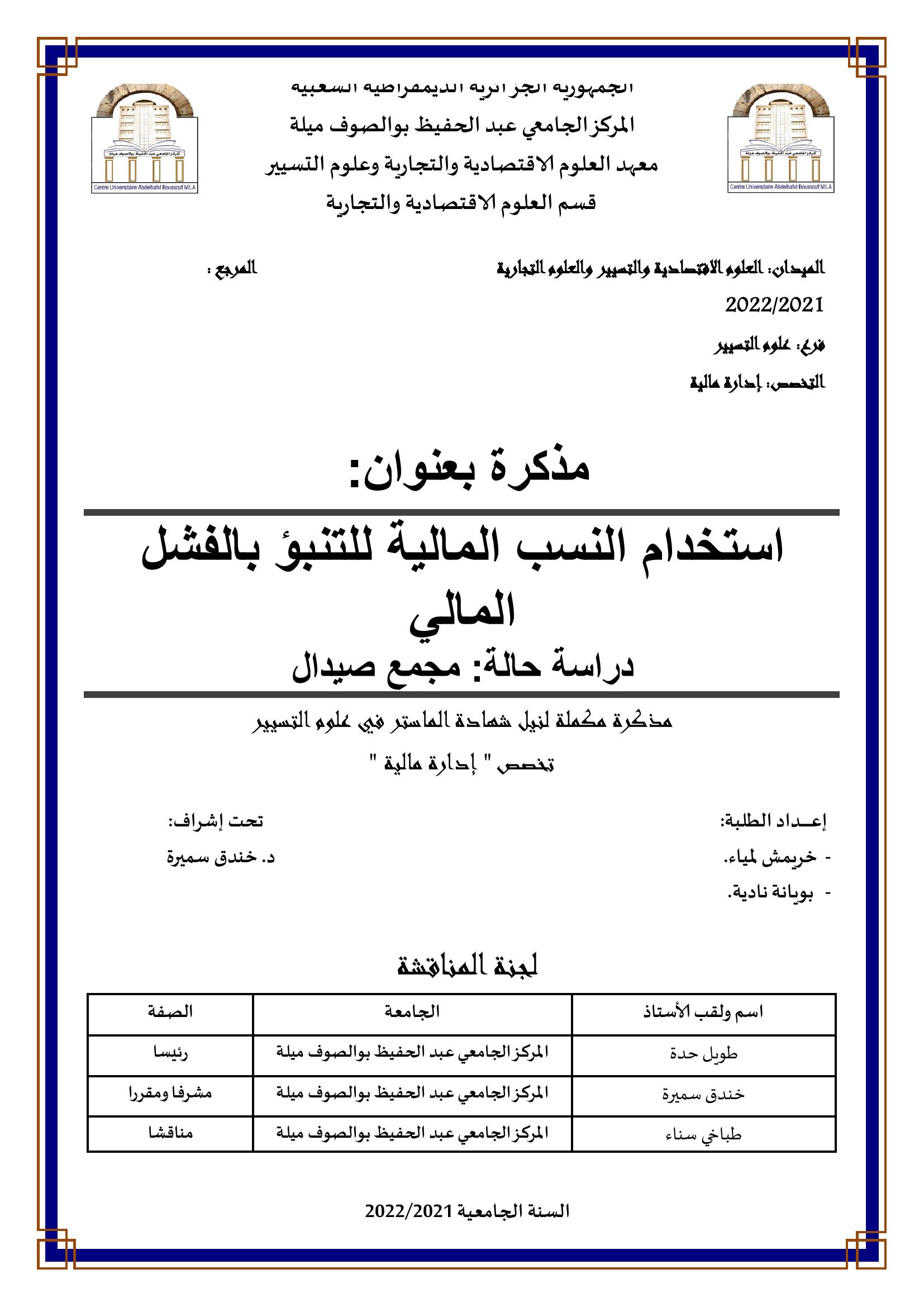 استخدام النسب المالية للتنبؤ بالفشل المالي : دراسة حالة: مجمع صيدال