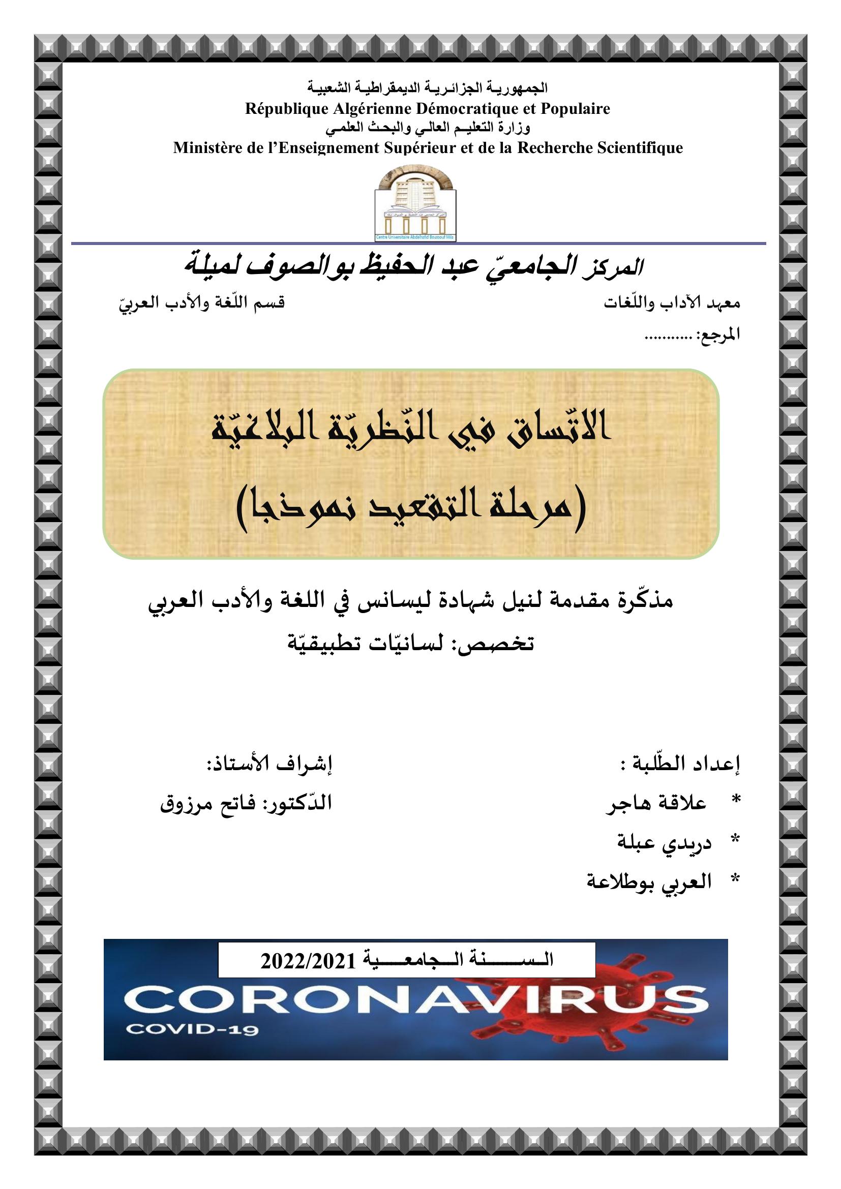 علاقة هاجر et al. (2022). الإتساق في النظرية البلاغية -مرحلة التقعيد نموذجا-.
