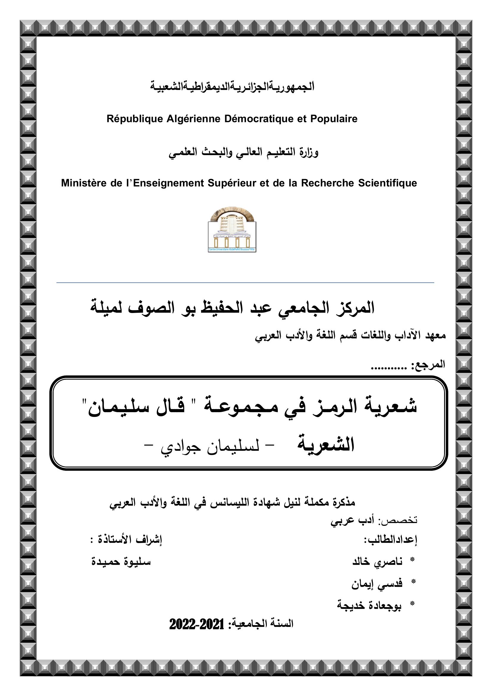 شعرية الرمز في مجموعة قال سليمان الشعرية -لسيمان جوادي-