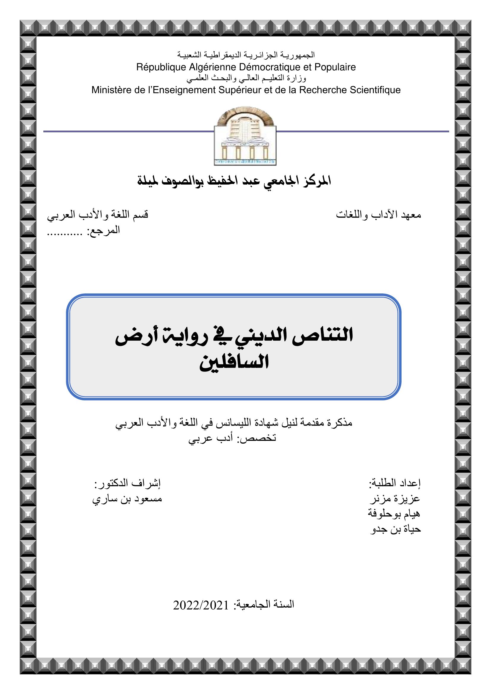 مزنر عزيزة et al. (2022). التناص الديني في رواية أرض السافلين.