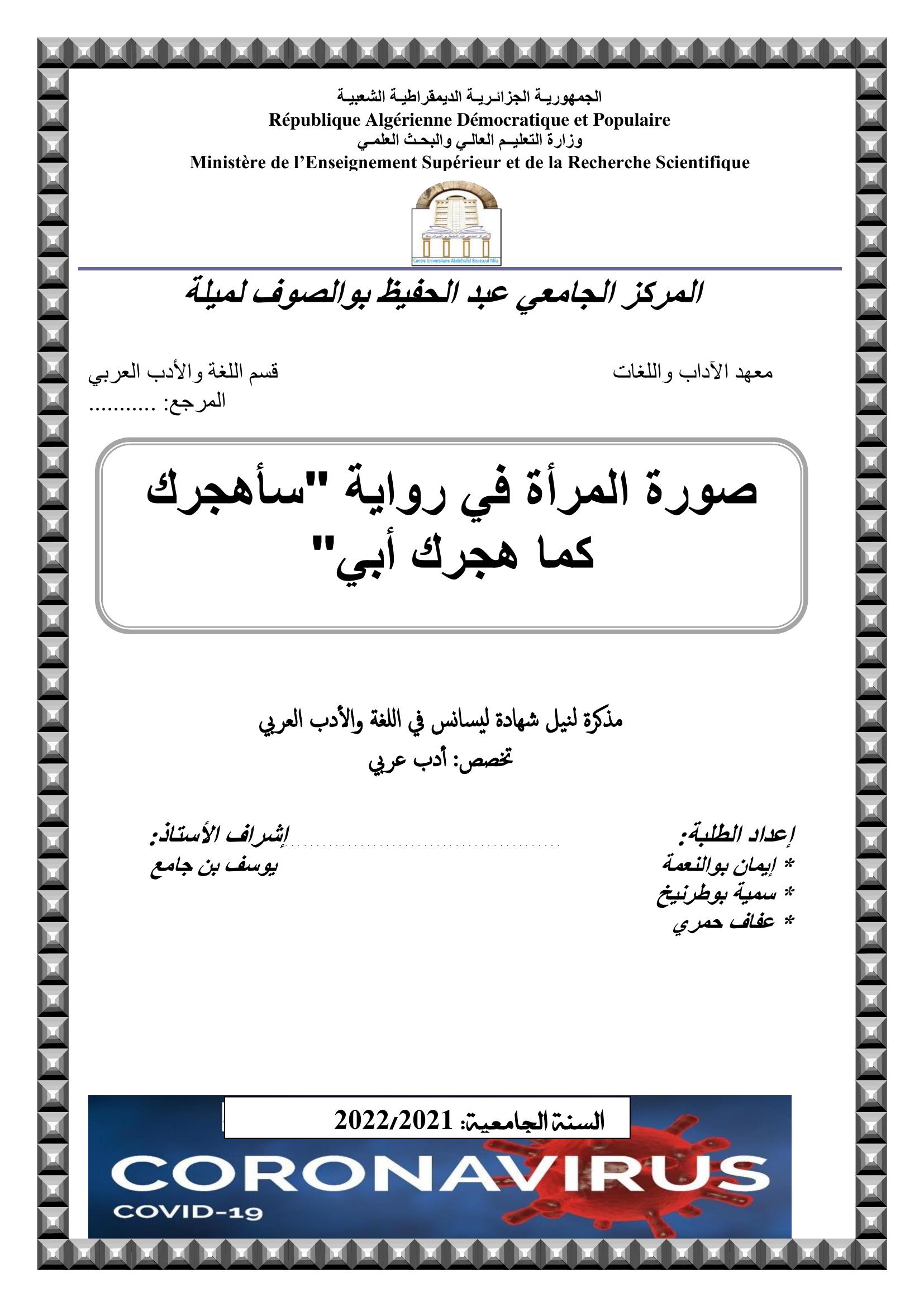 بوالنعمة إيمان et al. (2022). صورة المرأة في رواية سأهجرك كما هجرك أبي لديرا و داتسيدا.