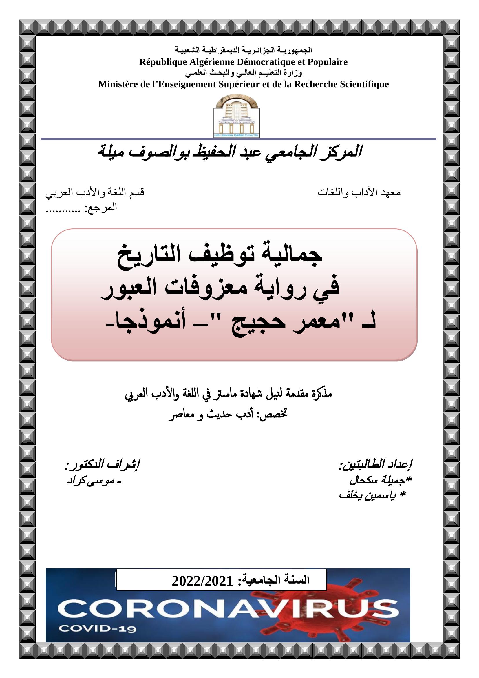 يخلف ياسمين et al. (2022). جمالية توظيف التاريخ في رواية معزوفات العبور لمعمر حجيج -أنمودجا-.