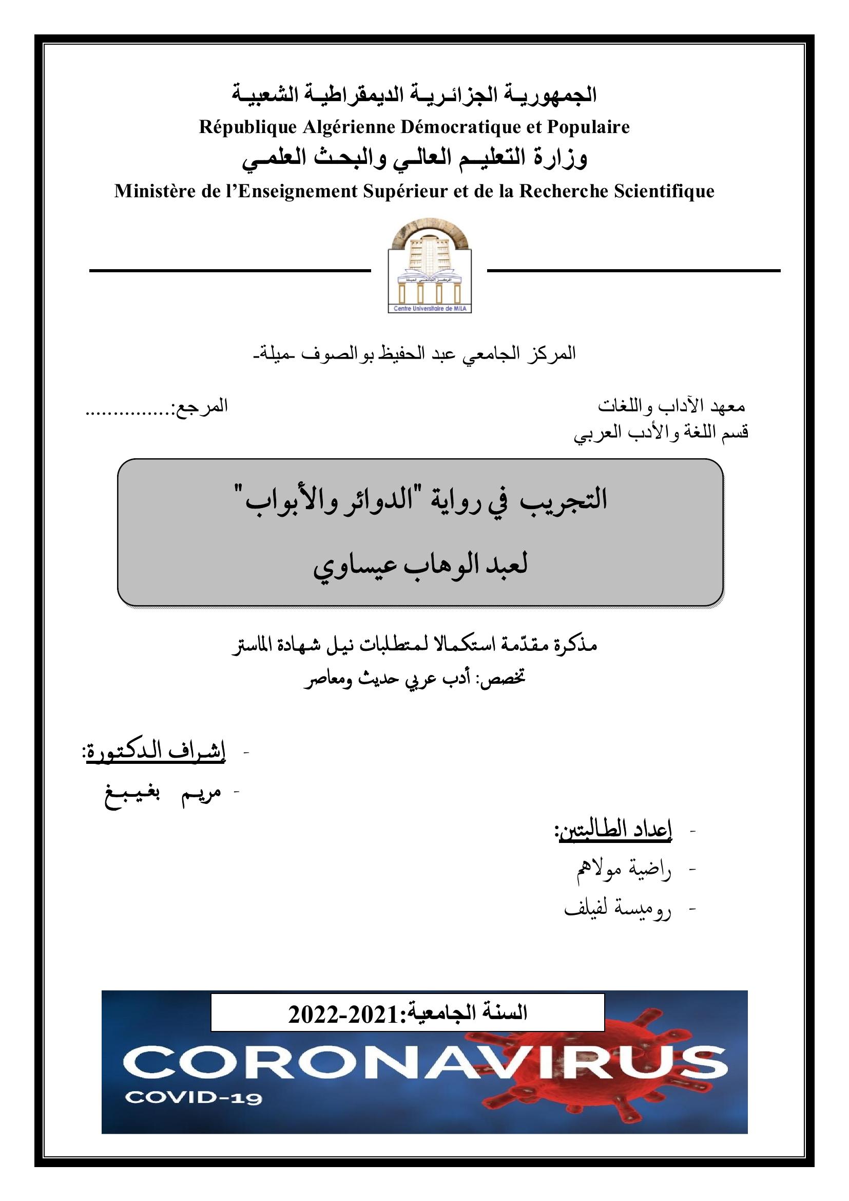 لفيلف روميسة et al. (2022). التجريب في رواية الدوائر والأبواب لعبد الوهاب عيساوي.