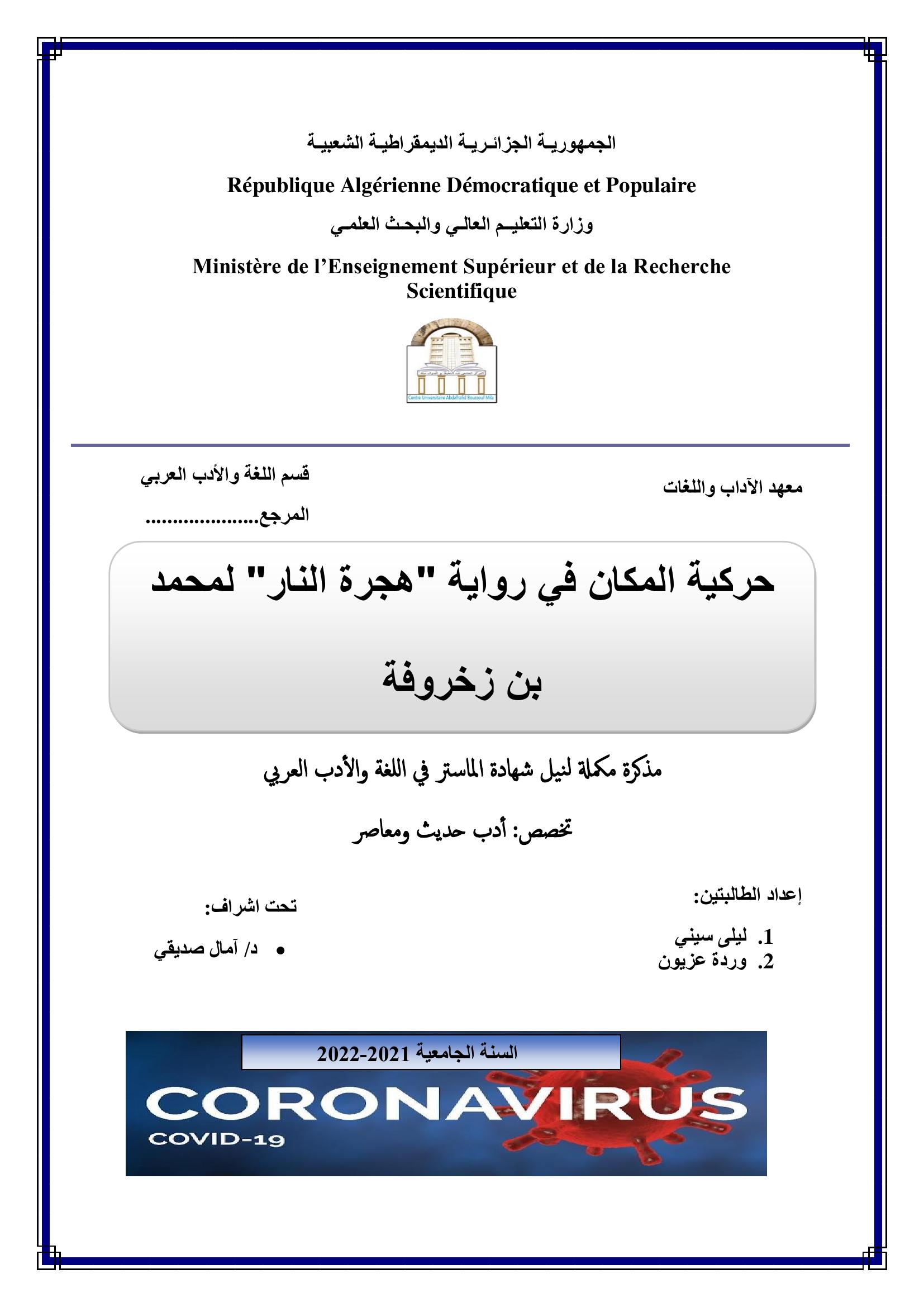 عزيون وردة et al. (2022). حركية المكان في رواية هجرة النار لمحمد بن زخروفة.