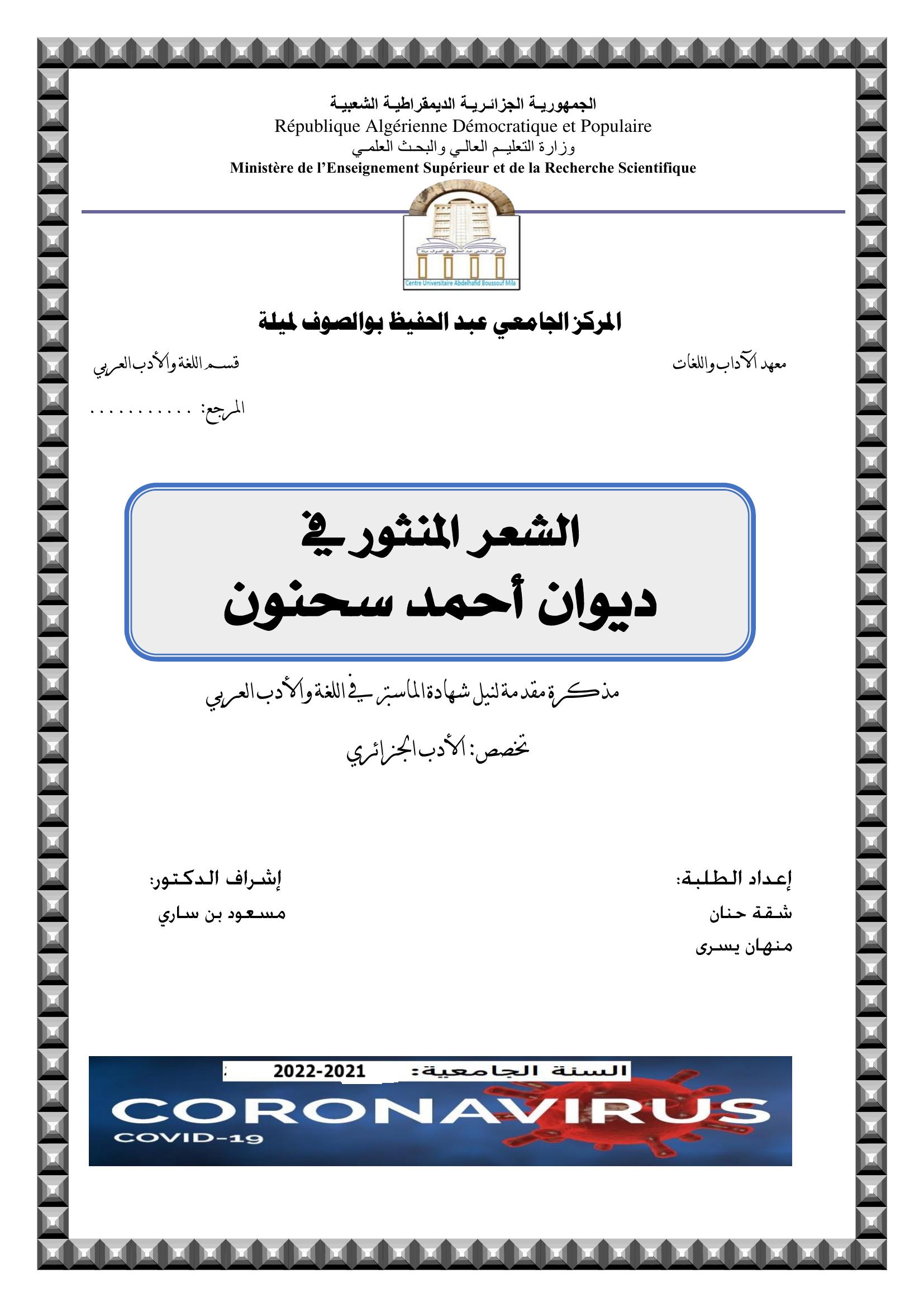 منهان يسرى et al. (2022). الشعر المنثور في ديوان أحمد سحنون.