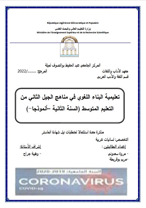 بوقريطة مريم et al. (2021). تعليمية البناء اللغوي في مناهج الجيل الثاني من التعليم المتوسط -السنة الثانية أنموذجا- (ماستر- ل م د) . المركز الجامعي عبد الحفيظ بوالصوف ميلة.