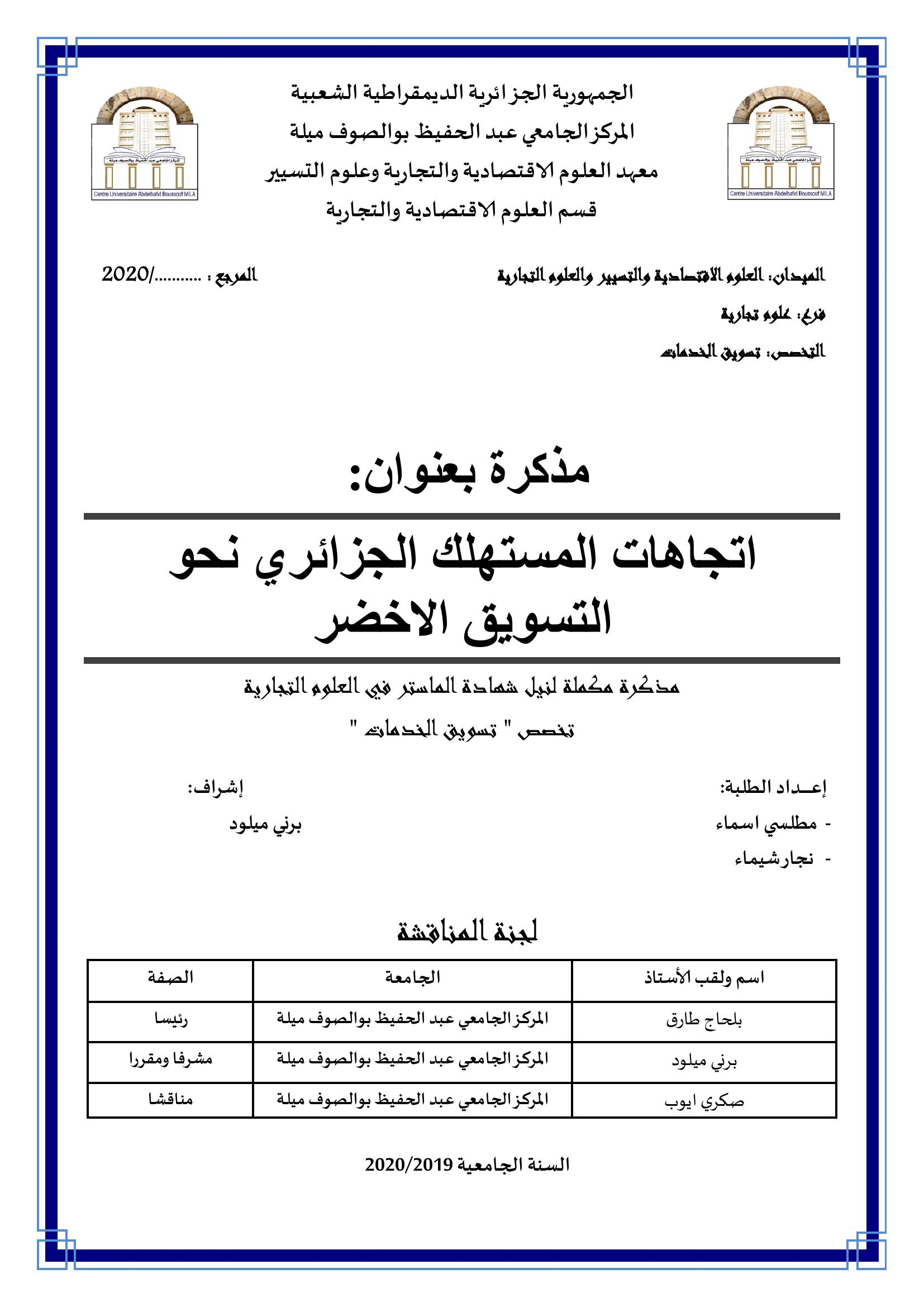 نجار شيماء et al. (2020). اتجاهات المستهلك الجزائري نحو التسويق الاخضر (ماستر- ل م د) . ميلة.