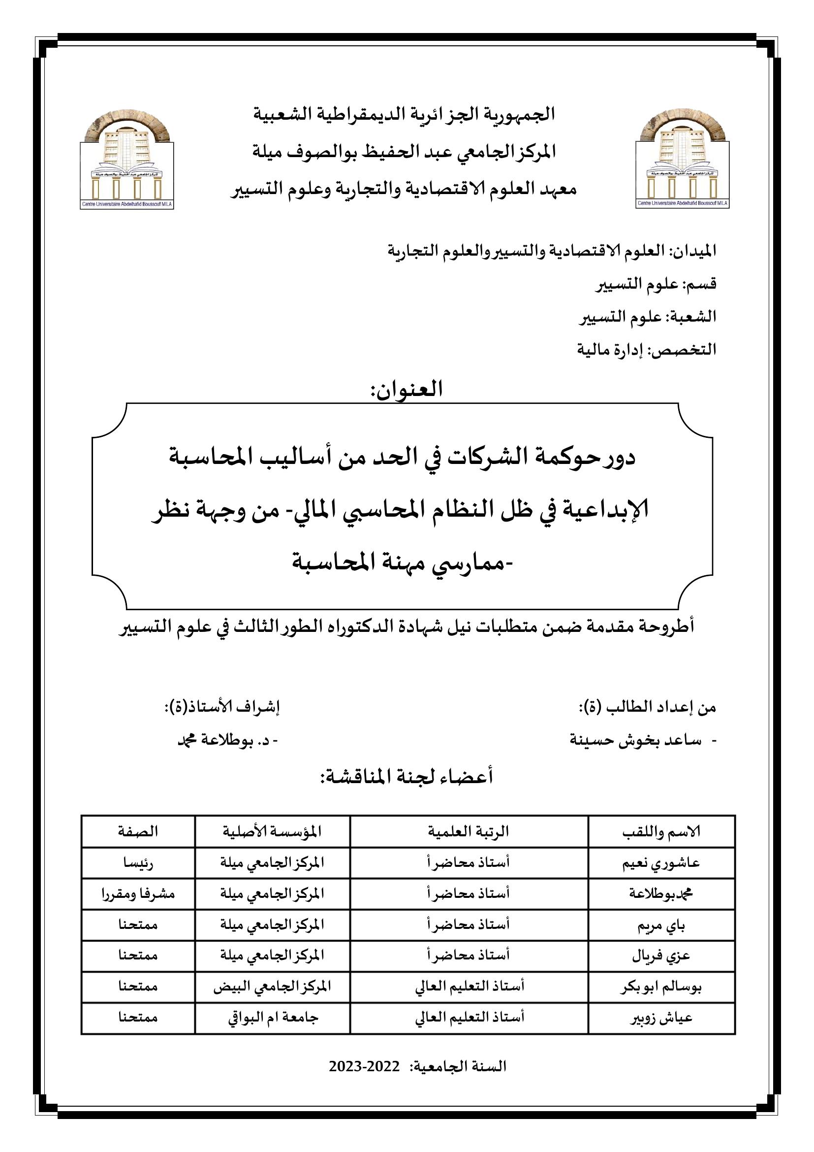 دور حوكمة الشركات في الحد من أساليب المحاسبة الإبداعية في ظل النظام المحاسبي المالي - من وجهة نظر ممارس ي مهنة المحاسبة -