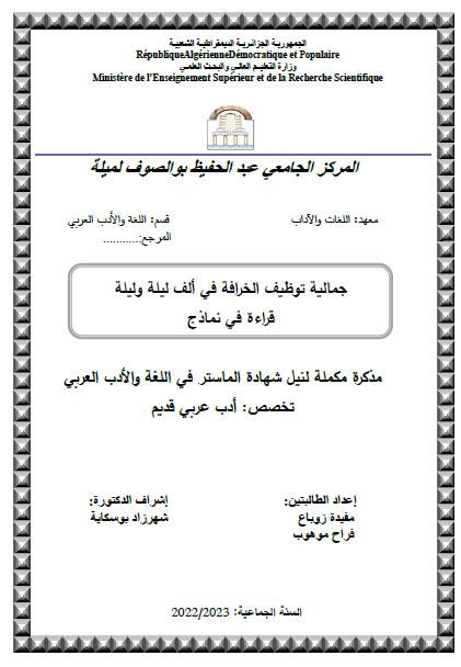 موهوب فراح et al. (2023). جمالية توظيف الخرافة في ألف ليلة وليلة قراءة في نماذج (ماستر- ل م د) . المركز الجامعي عبد الحفيظ بوالصوف ميلة.