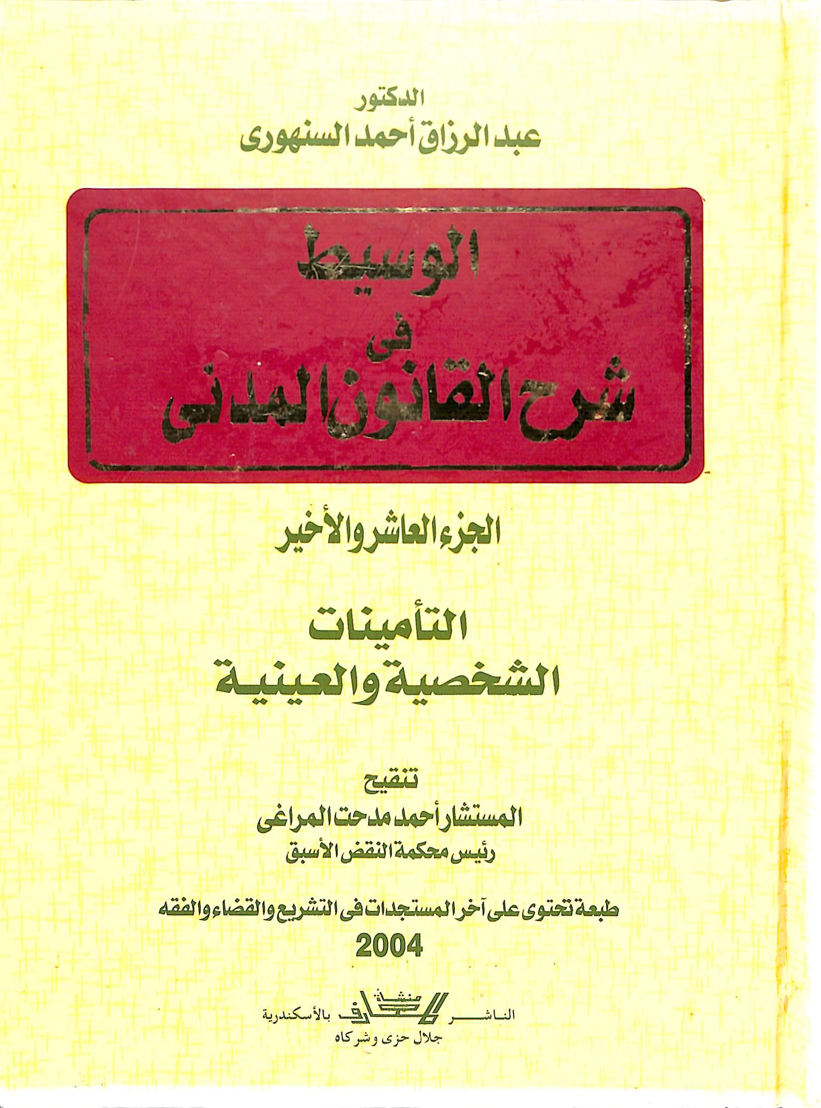 عبدالرزاق أحمد السنهوري (2004). الوسيط في شرح القانون المدني : التامينات الشخصية والعينية (ط.1) . منشأة المعارف;