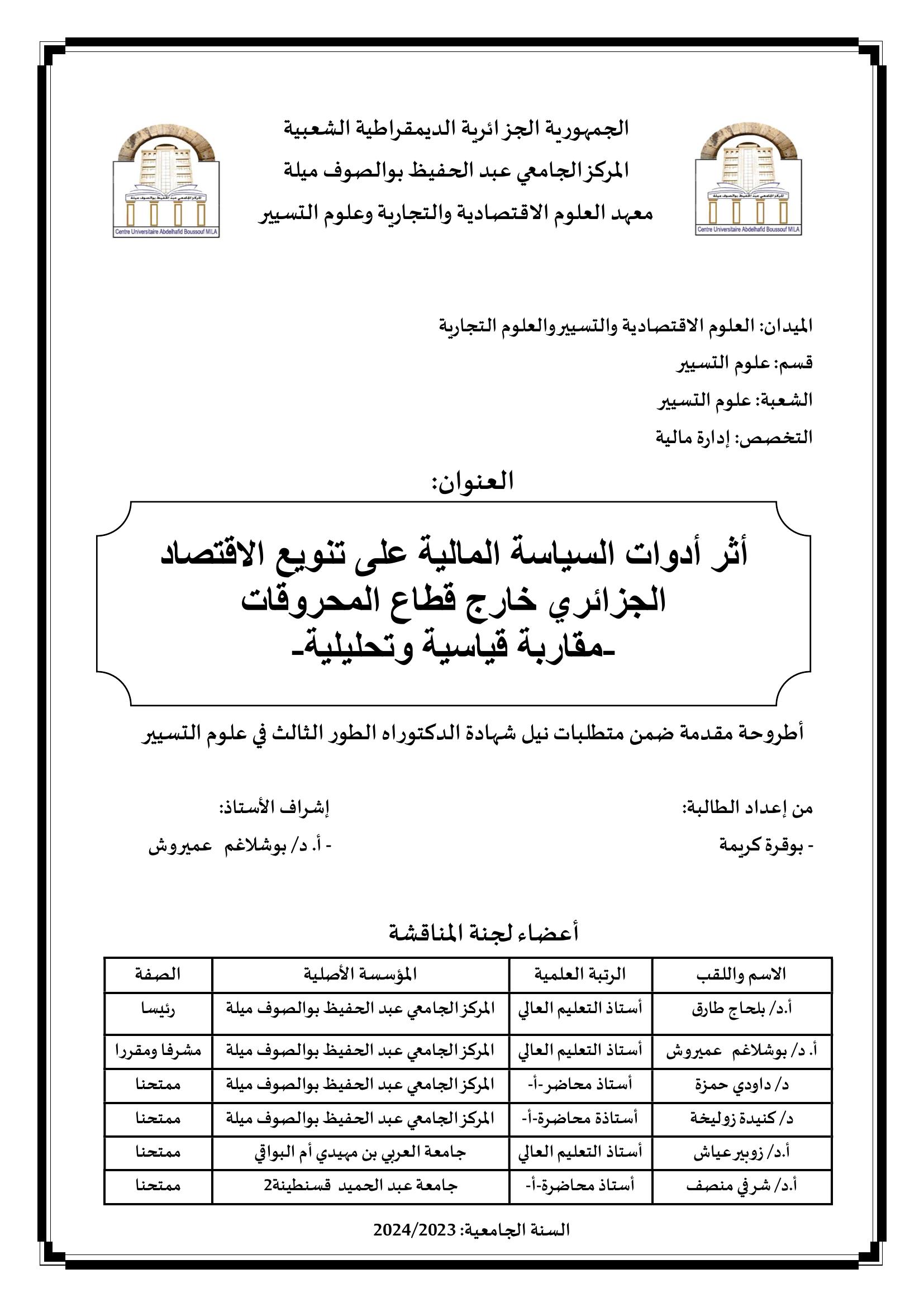 أثر أدوات السياسة المالية على تنويع الاقتصاد الجزائري خارج قطاع المحروقات مقاربة قياسية وتحليلية-