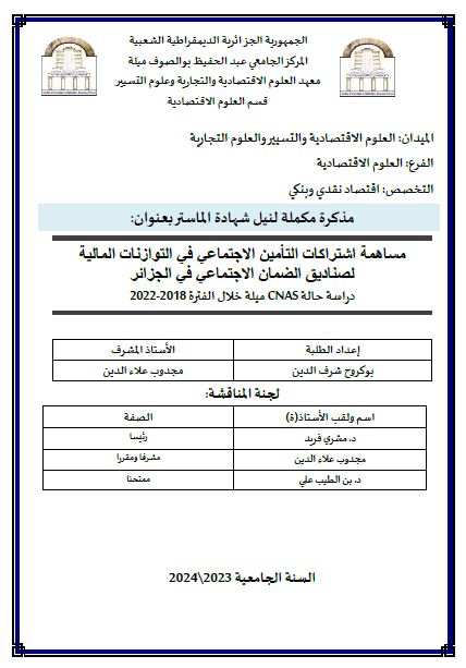 مساهمة اشتراكات التأمين الاجتماعي في التوازنات المالية لصناديق الضمان الاجتماعي في الجزائر: دراسة حالة CNAS ميلة مساهمة التكنولوجيا المالية في تطوير الخدمات المصرفية الإسلامية