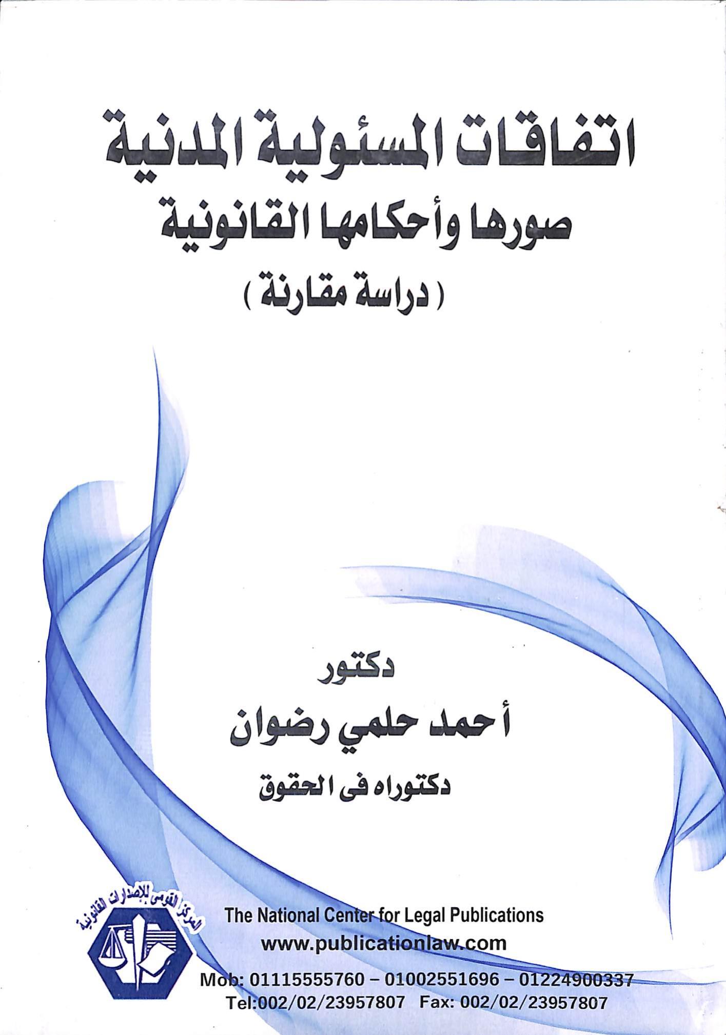 أحمد حلمي رضوان (2022). اتفاقيات المسؤولية المدنية صورها واحكامها القانونية : دراسة مقارنة (ط.1) . المركز القومي للاصدارات القانونية;