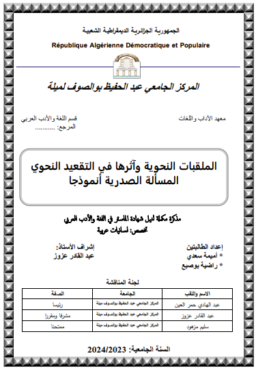 بوصبع راضية et al. (2024). الملقبات النحوية وأثرها في التقعيد النحوي - المسألة الصدرية أنموذجا - (ماستر- ل م د) . المركز الجامعي عبد الحفيظ بوالصوف ميلة.