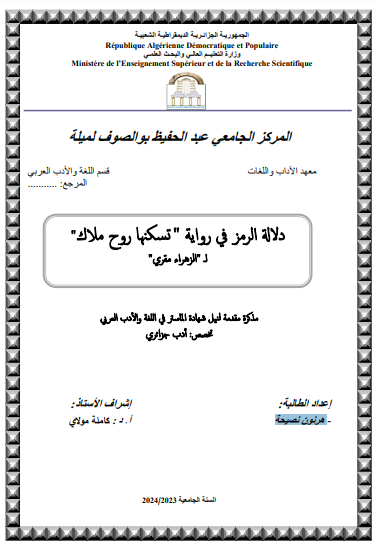 هرنون نصيحة & مولاي كاملة (مشرفا) (2024). دلالة الرمز في رواية "تسكنها روح ملاك " للزهراء مقري (ماستر- ل م د) . المركز الجامعي عبد الحفيظ بوالصوف ميلة.