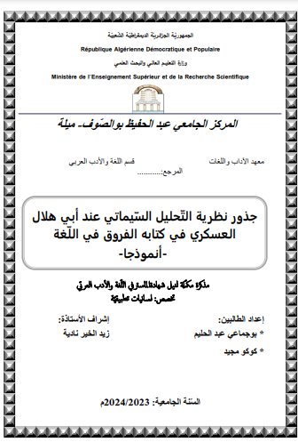 كوكو مجيد et al. (2024). جذور نظرية التحليل السيماتي عند أبي هلال العسكري في كتاب الفروق في اللغة أنموذجا (ماستر- ل م د) . المركز الجامعي عبد الحفيظ بوالصوف ميلة.
