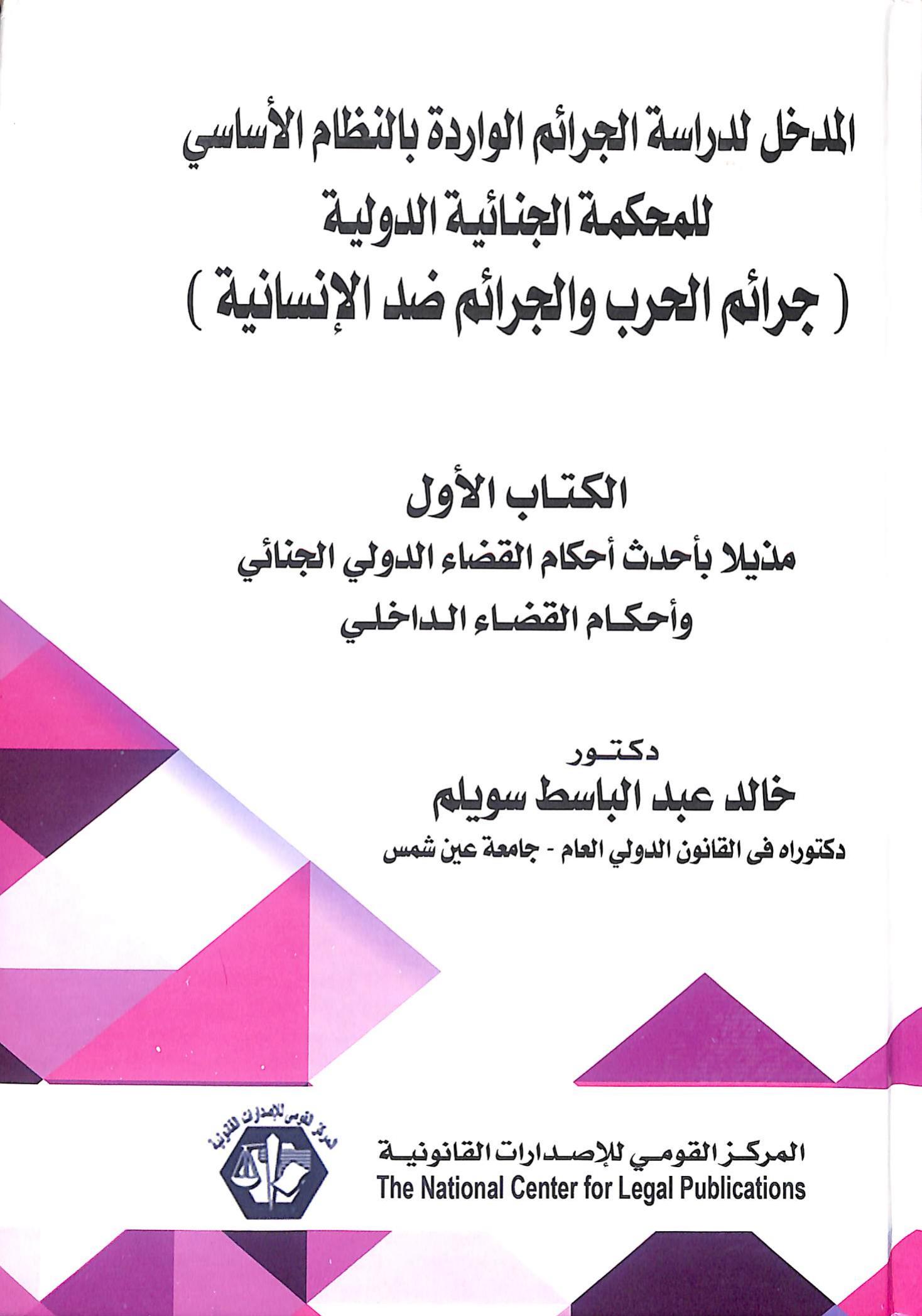 خالد عبد الباسط سويلم (2020). المدخل لدراسة الجرائم الواردة بالنظام الأساسي للمحكمة الدولية الجزء الاول (ط.1) . المركز القومي للاصدارات القانونية;