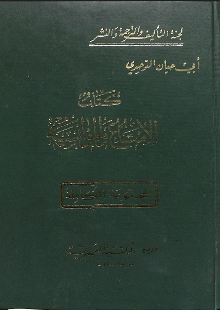 أبي حيان التوحيدي (1953). كتاب الأمتاع والمؤانسة . المكتبة العصرية;