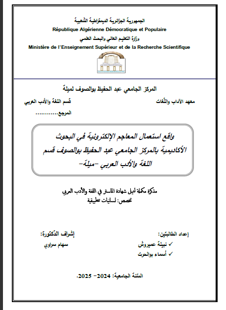 واقع استعمال المعاجم الإلكترونية في البحوث الأكاديمية بالمركز الجامعي عبد الحفيظ بوالصوف قسم اللغة والأدب العربي - ميلة -