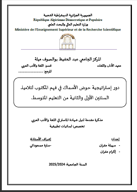 مقران،سهيلة et al. (2025). دور إستراتيجية حوض الأسماك في فهم المكتوب لتلاميذ السنتين الأولى والثانية من التعليم المتوسط. (ماستر- ل م د) . المركز الجامعي عبد الحفيظ بوالصوف ميلة.