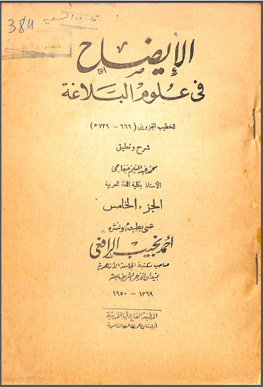 الخطيب القزويني (1950). الإيضاح في علوم البلاغة . المطبعة الفاروقية الحديثة;